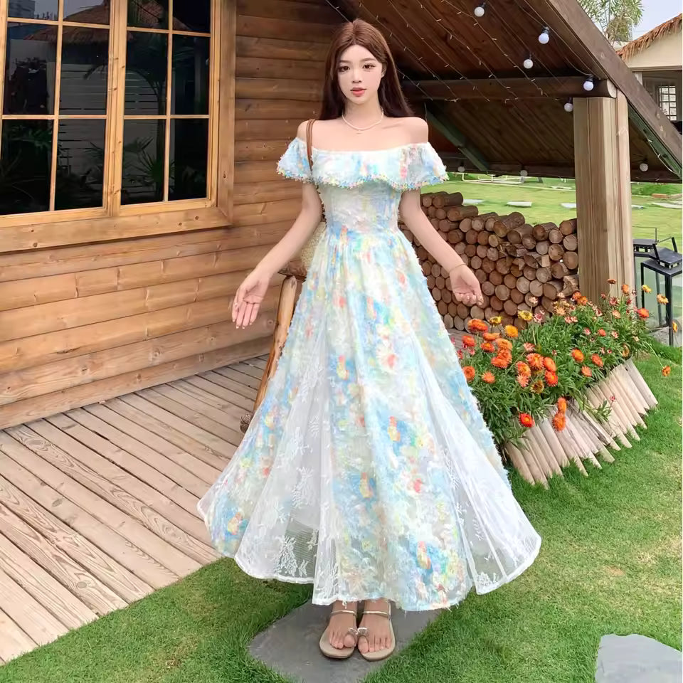 Abito Floreale Francese Spalle Scoperte