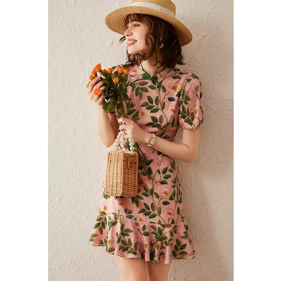The LOUISYAO Elegant Floral Long Dress captures the essence of modern femininity with a refined summer silhouette. Designed for effortless elegance, this dress blends chic streetwear with classic Cheongsam-inspired details for a graceful yet contemporary look.